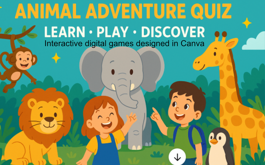 Animal Adventure Quiz Game - Interactive Learning Game for Kids designed in Canva